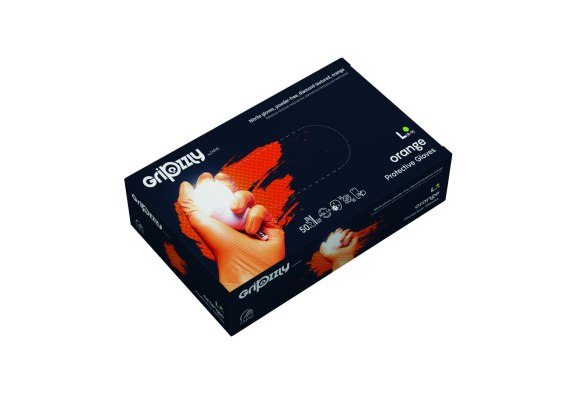 RĘKAWICE OCHRONNE, NITRYLOWE BEZPUDROWE POMARAŃCZOWE 50 SZT. - GRIPZZLY ROZM. M