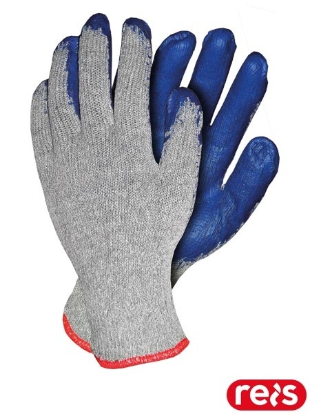 Rękawice z dzianiny z połączenia bawełny i poliestru (ścieg 10), powlekane lateksem, zakończone ściągaczem. rękawice przeznaczone do prac w budownictwie oraz przemyśle transportowym.