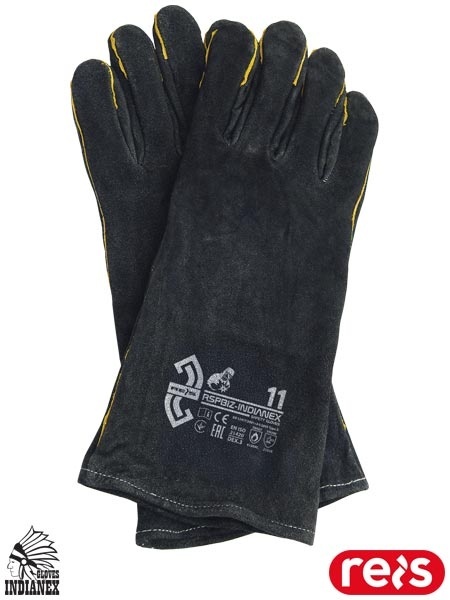 Rękawice spawalnicze ze skóry bydlęcej dwoinowej, długość 35 cm.