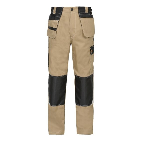 Spodnie do pasa PROMONTER. Spodnie wykonane z wytrzymałej na rozdzieranie i tarcie tkaniny typu Twill o składzie 65% poliester i 35% bawełna, o gramaturze 260g/m2. Na kolanach wzmocnienia z materiału typu OXFORD zabezpieczającego przed przetarciem. Możliwość zastosowania wkładek nakolannikowych. Dodatkowe elementy odblaskowe. Duża liczba funkcjonalnych kieszeni w tym dwie zwiększające swobodę ruchów podwójne wiszące kieszenie monterskie z podziałkami i dodatkowymi elementami do zamocowania akcesoriów lub narzędzi, kieszeń na calówkę, kieszeń typu bojówka, dwie kieszenie tylne i dwie kieszenie boczne. Gumy dopasowujące w tylnej części pasa. Dodatkowe wzmocnienia, rygle i podwójne szwy zwiększające wytrzymałość. Wyprodukowano w Polsce zgodnie z ISO 9001. Rozmiary od 48-62. (UE) 2016/425